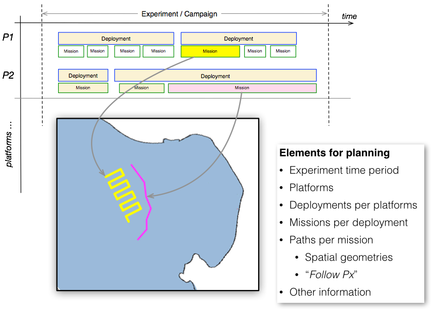 A central goal of the Planning component in ODSS is to support the overall planning of science experiments/campaigns through an intuitive graphical interface where platforms can be assigned deployments and missions within a spatiotemporal frame.