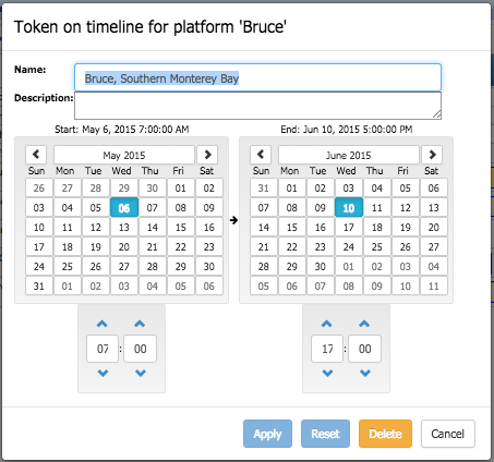 You can then drag the token position or change the starting or ending dates by dragging the icon that appears at the corresponding end of the token.