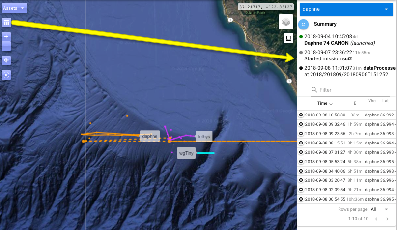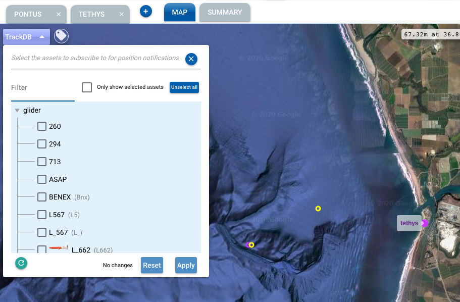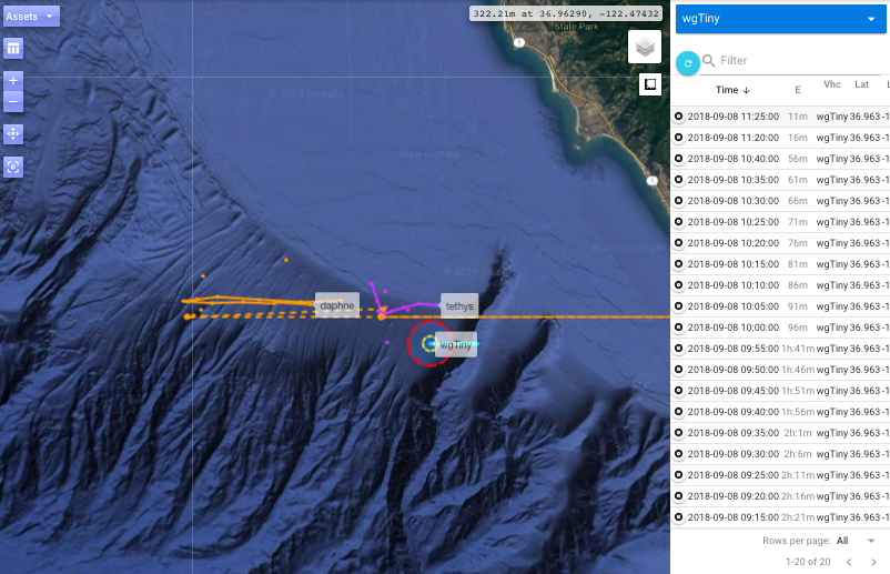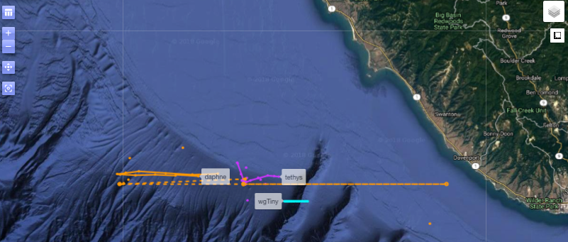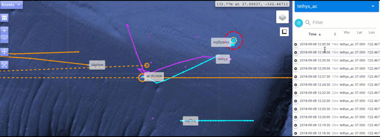The Dash is able to include the latest positions of assets maintained in the MBARI tracking database. (See note at the bottom of this page.)