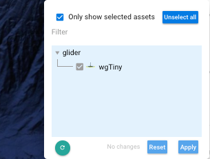 Use the filter field to quickly find the desired asset or assets. For example, upon entering
