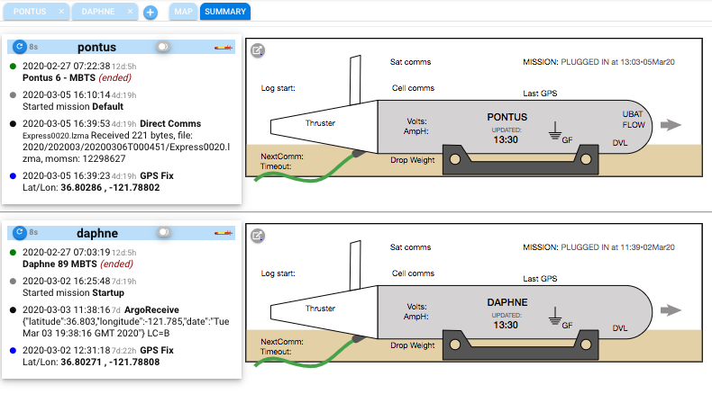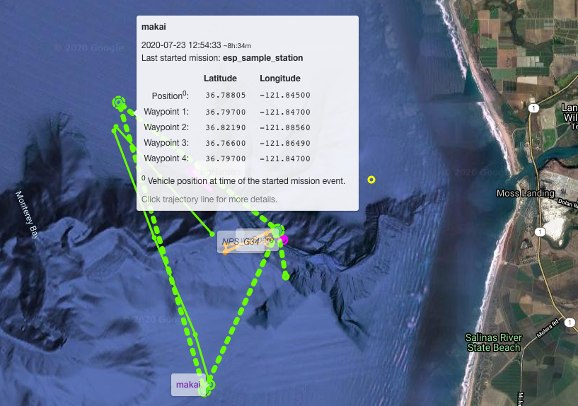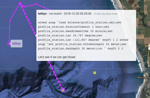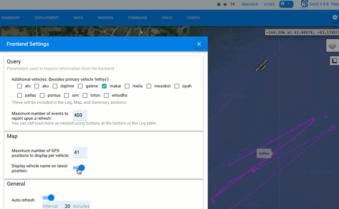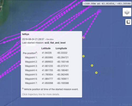 With support from the TethysDash backend (new optional parameter for more permissive parsing of missions), Dash3 can now display the waypoint trajectory associated with some missions that are not strictly conformant to the Tethys XML Schemas. This is intended to facilitate incremental transition to full schema conformance.