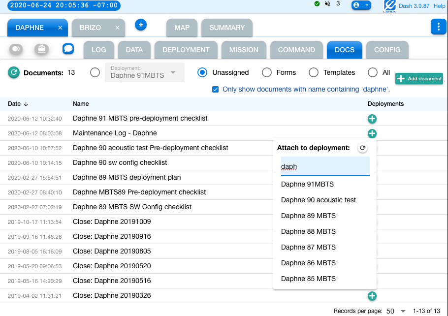 - Deployment: Only show documents attached to the selected deployment.