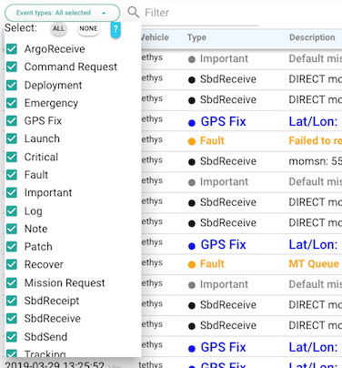 - event-type-selection and text filter on the left