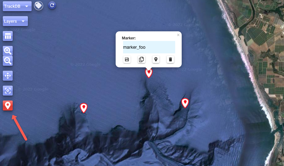 Click the button with the map pin icon on the left to enable the entry of the markers (the button will turn red):