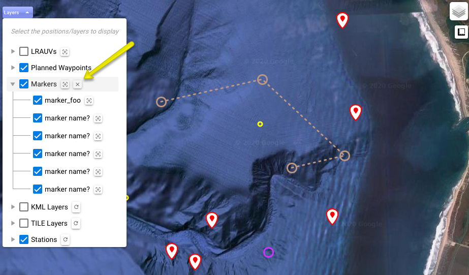 As with other features on the map, you can select which markers to actually display.