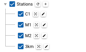 The 'Layers' dropdown includes a Stations entry that allows to define, update, and select generic "points" to be displayed on the map.