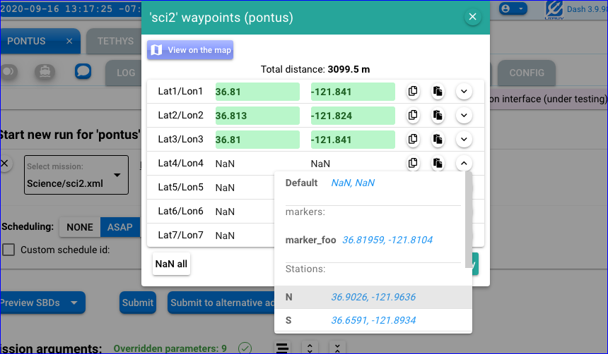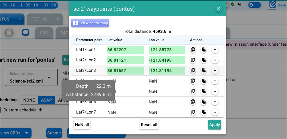 The tooltip for a row containing a non-NaN waypoint shows: