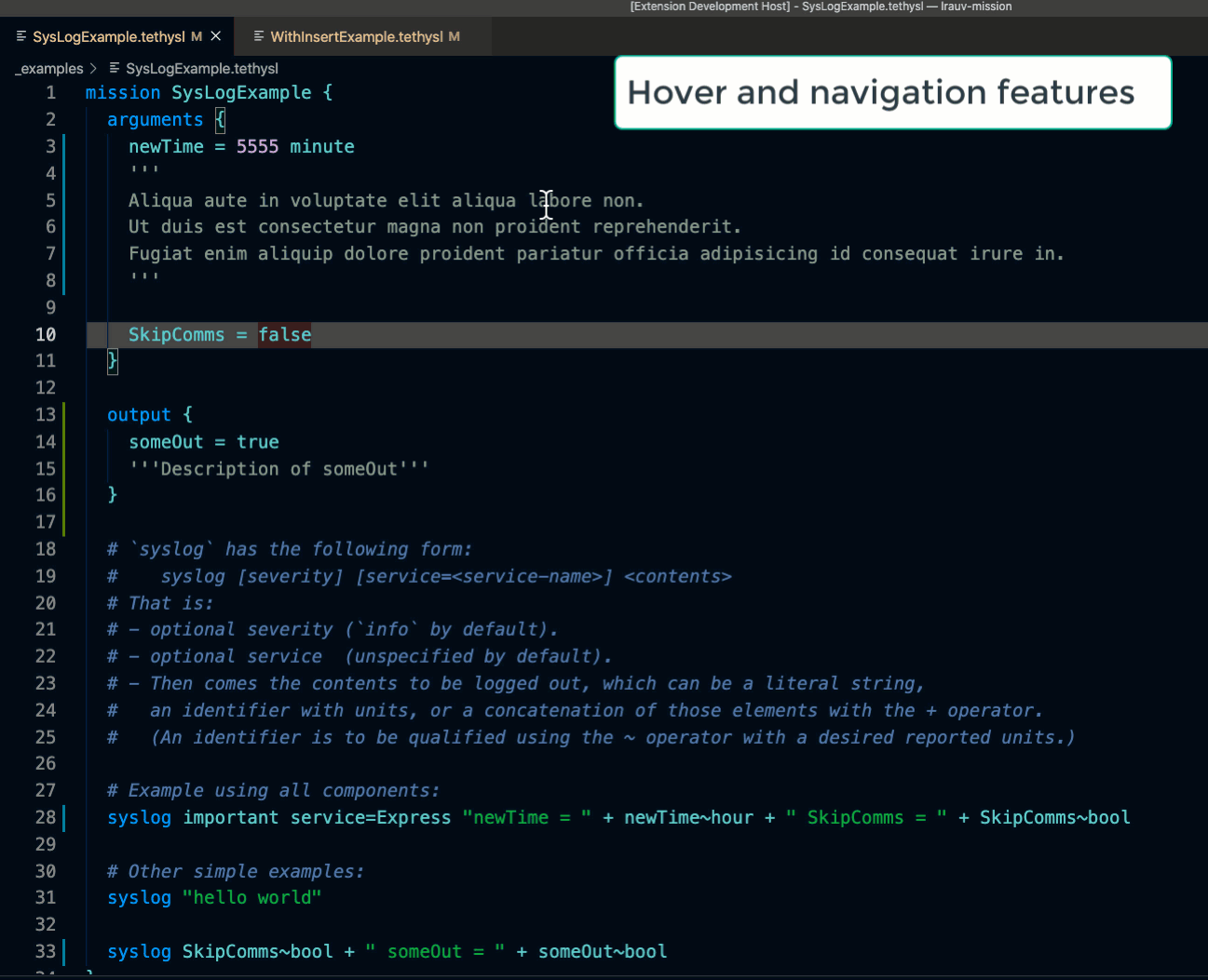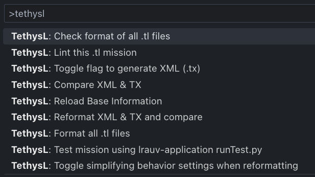 Visual Studio Code (VS Code) is currently our primary target for enabling enhanced features on TethysL scripts, including validation, autocompletion, navigation, and mission regression testing.